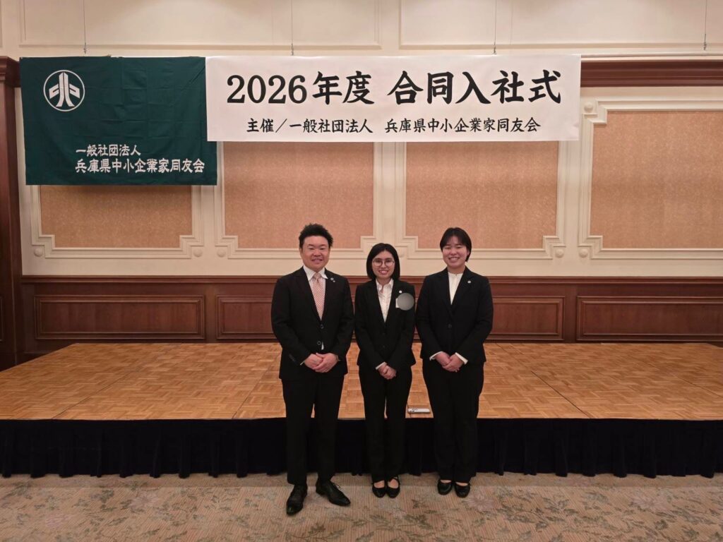 さて、「合同入社式」という兵庫県の中小企業に入社した新入社員が集う入社式に、弊社の新入社員も出席してきました!